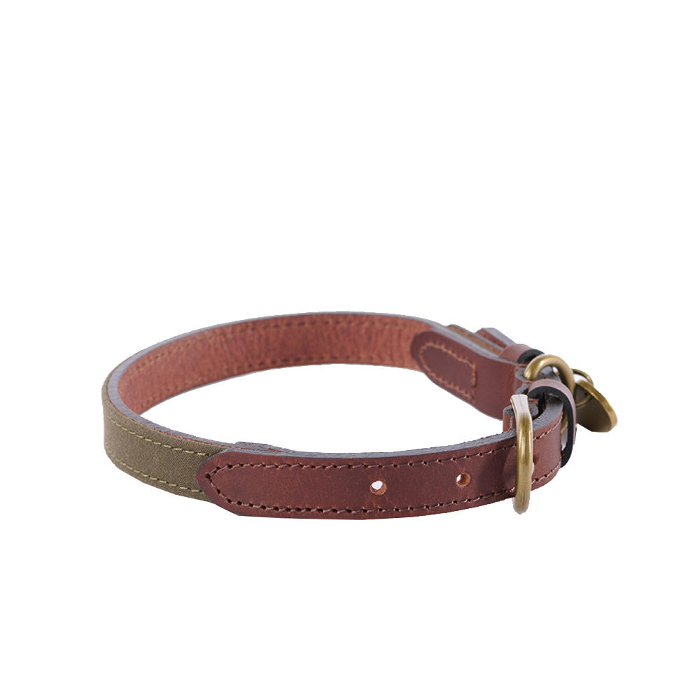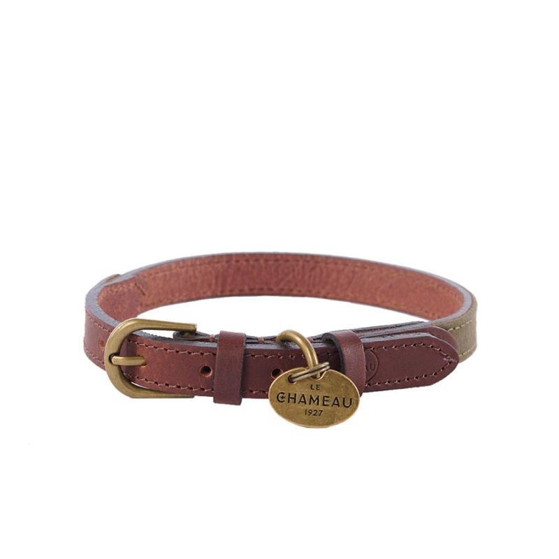 Le Chameau Hundehalsband Leder/Canvas, Vert Chameau, Größe S