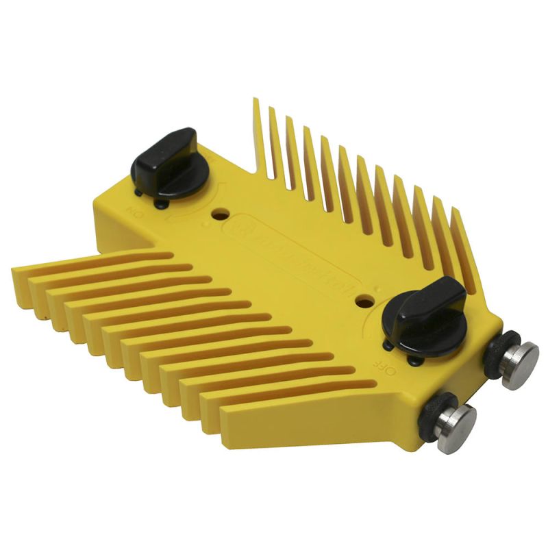 Die beidseitigen Druckkämme dienen zur universellen Anwendung. Einsetzbar an beiden Seiten eines Führungsanschlages, an rechts- und linksdrehenden Werkzeugschneiden, an ferromagnetischen Maschinentischen und Parallelanschlägen. Enthält zwei MagJig-Magnete mit je 43 kg Haltekraft.