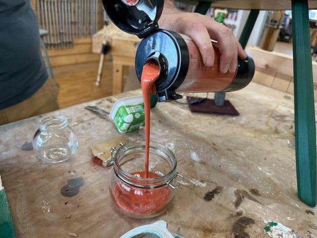 Frisch angerührte Kaseinfarbe überzeugt in jeder Hinsicht: