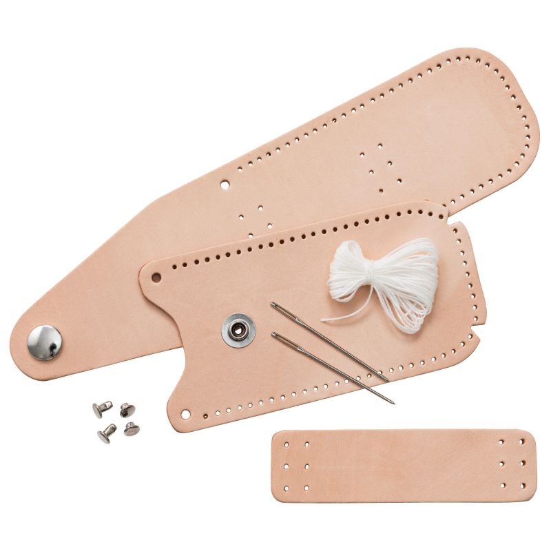 Das Einsteiger-Set enthält vorgeschnittene, vorgestanzte Stücke aus pflanzlich gegerbtem Leder, einen vorinstallierten Druckknopfverschluss sowie Nadel und Faden. So können Sie sich ganz auf das Nähen, Färben und Anpassen konzentrieren. Zur individuellen Gestaltung kann das Leder gefärbt oder punziert werden.