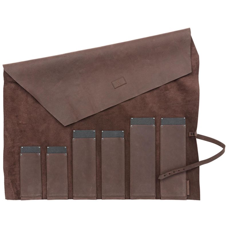 Messer-Rolltasche Deluxe, Rindsleder mit Kevlarschutz, 6 Fächer, braun