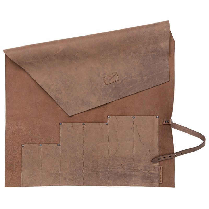 Messer-Rolltasche, Pferdeleder, 6 Fächer, rinde