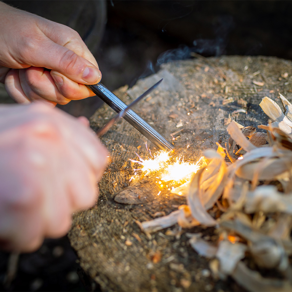 - Feuermachen: Techniken wie das Entzünden von Feuer mit Feuerstahl oder durch Reibung.