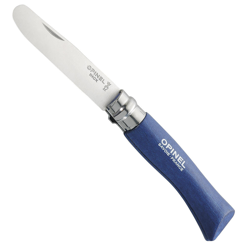 Kindermesser Die Opinel-Kindermesser, basierend auf dem klassischen No. 8, verfügen über eine abgerundete Spitze und sind mit dem Virobloc-Sicherheitssystem ausgestattet. Erhältlich in den Farben Blau, Pink und Buche, sind diese Messer speziell auf die Bedürfnisse von Kindern abgestimmt und erfreuen sich großer Beliebtheit.