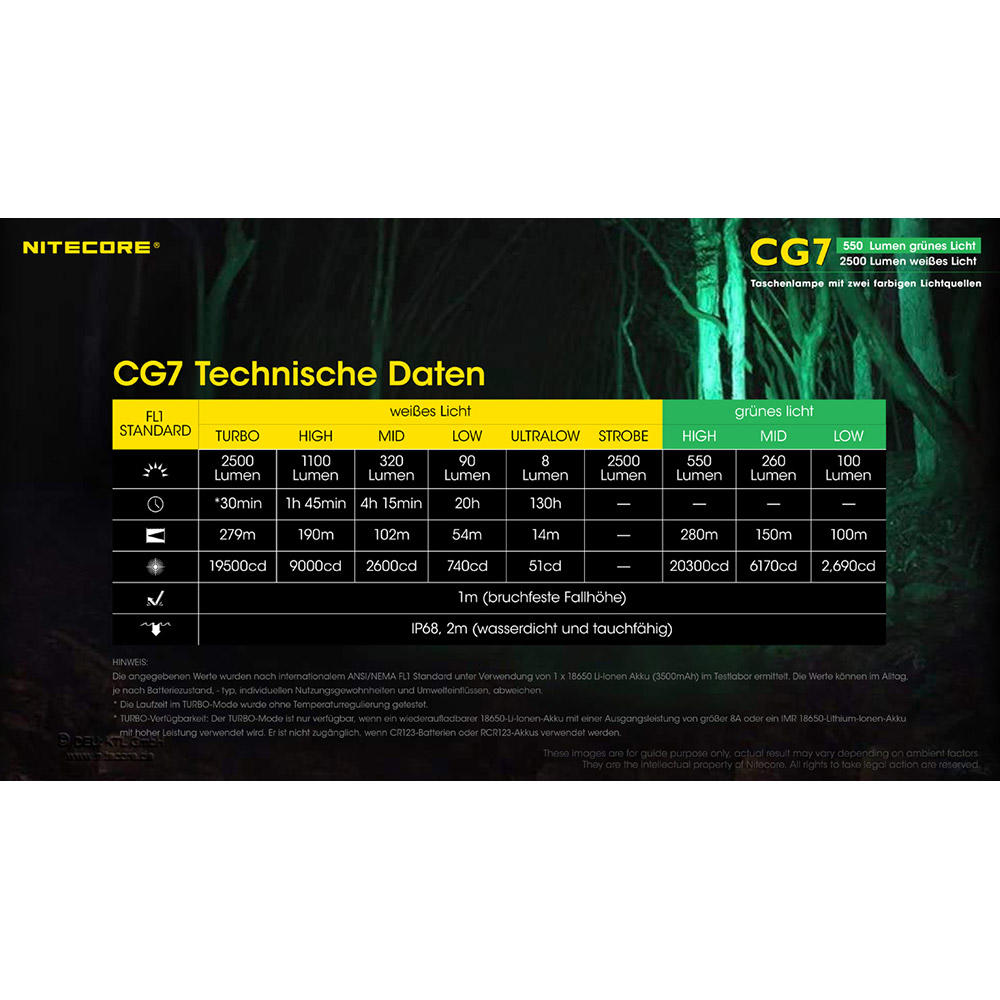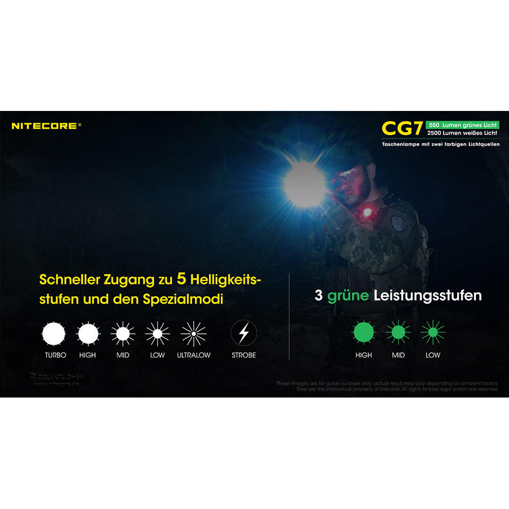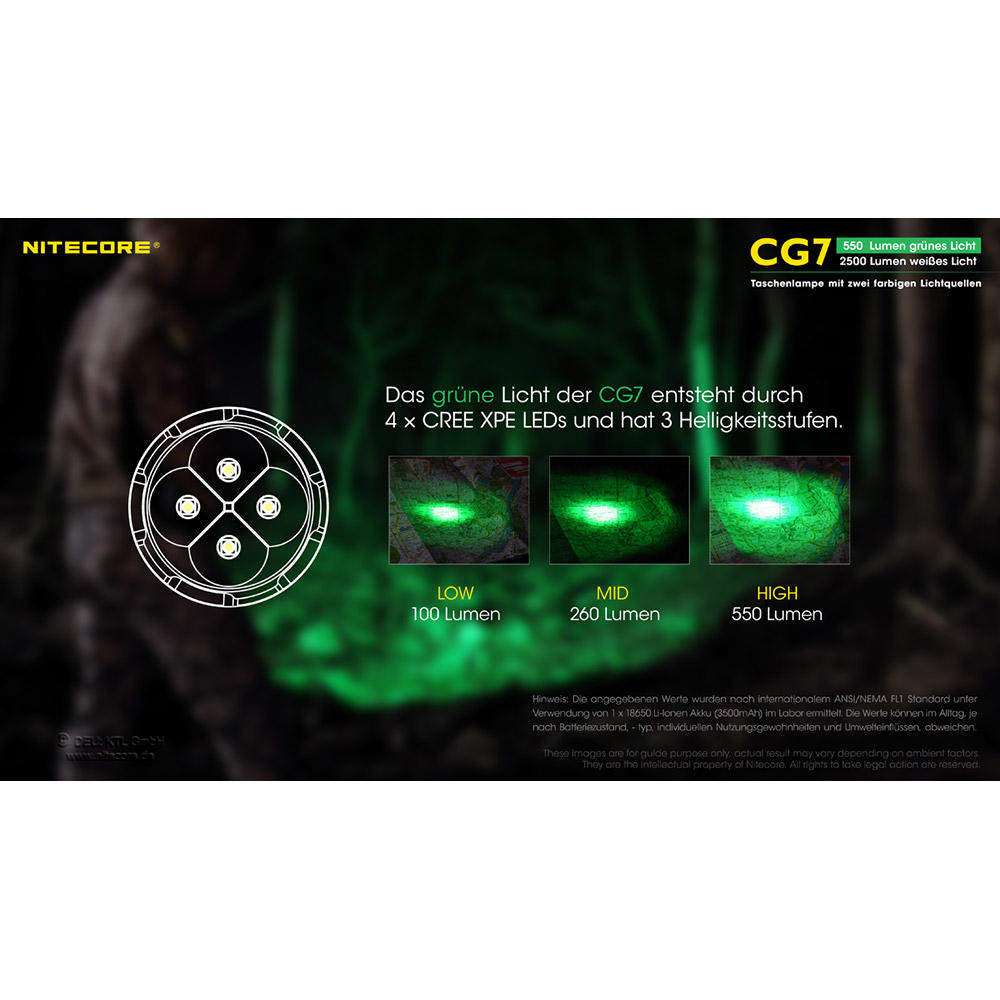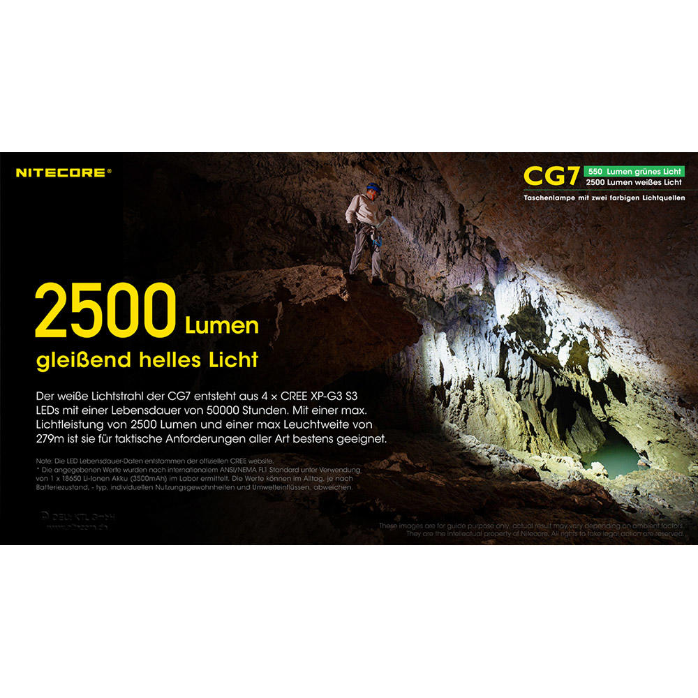 Nitecore® CG7, 2500 lm Weißlicht und 550 lm Grünlicht