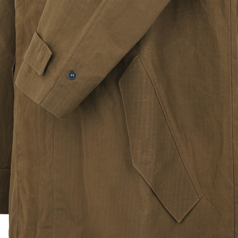 Aus 100 % Bio-Baumwolle in robuster Machart überzeugt der Parka als ideale Übergangsjacke. Das Ripstop-Gewebe ist besonders reißfest und wasserabweisend. Man erkennt es an der charakteristischen »Rechenkästchenstruktur«, welche durch die Einwebung von dickeren Fäden in das ansonsten dünne Gewebe entsteht. Die beiden Pattentaschen und die verstellbare Kapuze geben dem Parka seinen authentischen Look. Der bequeme Raglanärmel und der praktische Kordelzug sorgen für einen optimalen Sitz.