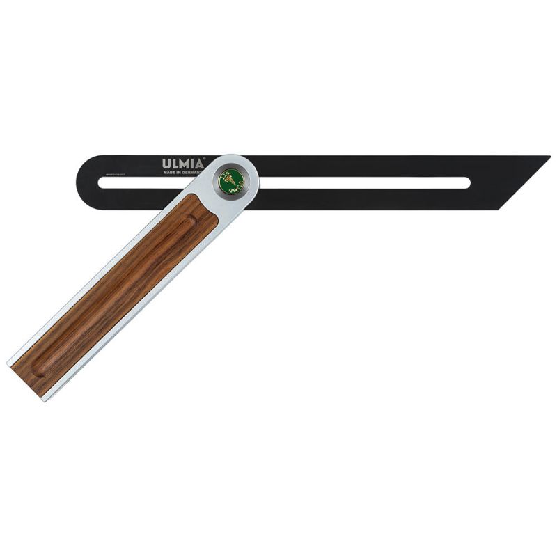 Zum Abnehmen, Übertragen und Anreißen von Winkeln. Kopfstück aus Aluminium mit eingelgtem Nußbaumholz. Einfache Arretierung der gehärteten und gebläuten Zunge durch große Flügelmutter.