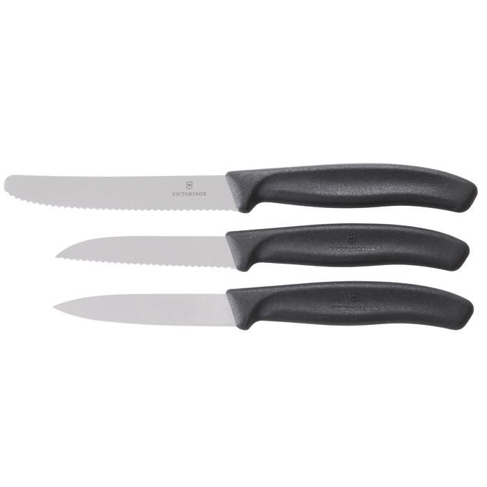 - Allzweckmesser: Zum Schneiden, Putzen und Schälen von Obst und Gemüse, sowie zum Zerkleinern von Knoblauch, Kräutern etc.; Klingenlänge 80 mm, Gesamtlänge 190 mm