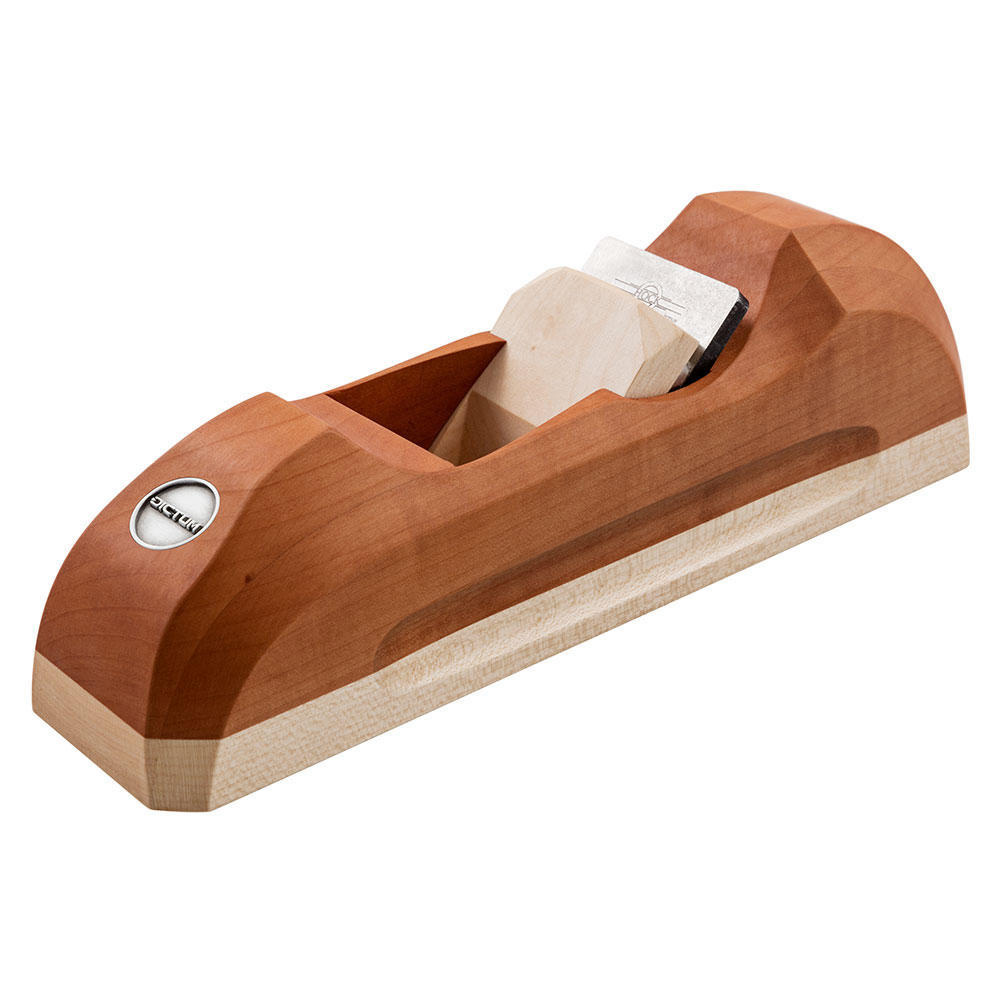 Der Low Plane Hobel ermöglicht durch seine niedrige Bauform ohne störende Griffe einen schnellen Wechsel der Handhaltung und Druckverlagerung. Durch sein geringes Gewicht lässt er sich mühelos führen und neu auf dem Material aufsetzen, und so, je nach Situation, schieben oder ziehen.